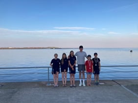 Auf dem Bild von links nach rechts: Mira, Amelie, Ruben, Noel Wagner (Trainer), Carolina, Simon