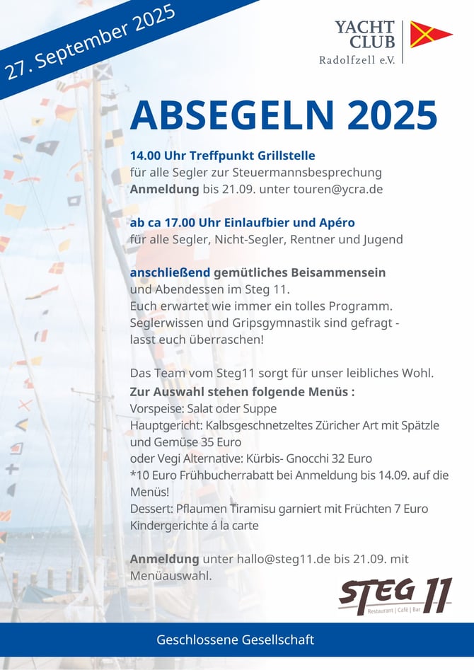 Der seglerische Teil unseres diesjährigen Absegelns fällt leider wetterbedingt aus.