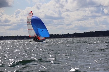 Samstag: Das Wetter war sonnig, aber der Wind ließ lange auf sich warten. Erst am Nachmittag konnten die 29er starten. Bei leichten, drehenden Winden war es schwer, den richtigen Kurs zu finden.