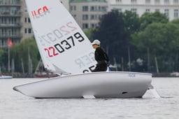 Nach der YES in Kiel nutzten Erik Weinrich (ILCA 6) und ich (ILCA 4) die Gelegenheit, dass unsere Boote schon im Norden waren, und segelten beim Flitz Pokal vom Norddeutschen Regatta Verein mit. Gesegelt wurde mitten in Hamburg auf der Außenalster. Das Einslippen war zunächst gewöhnungsbedürftig, da die Boote auf dem Slipwagen bis an das Ende des Stegs gefahren und dort ins Wasser gekippt wurden.